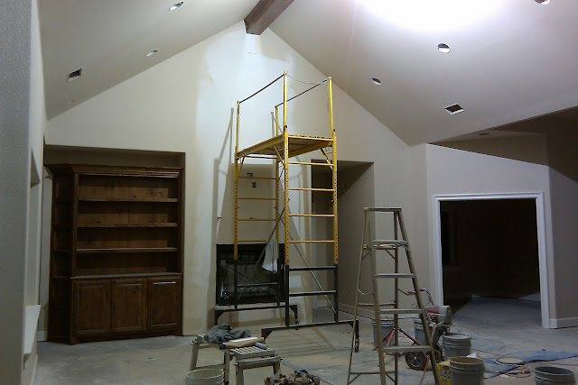 Rick finished painting inside the house today and only lacks the garage.  He had to make a trip to the stone place to approve their assortment of stones for the fireplace (which they say will be started tomorrow).  He also had to finish the vent pipe and system for the vent hood because that area will also be covered with stone tomorrow.  He should be able to finish painting the garage tomorrow.
