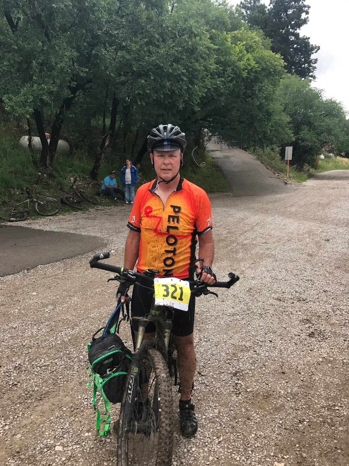 Saturday, we did a relatively short ride on 8 mile road and ate a bbq lunch at Cloud Country for the James Ridge volunteer fire dept annual fundraiser.  Vince, Amy, and I later hiked the Osha trail, then we shopped some more and hung out at the Lodge on the patio for a while.  I saw on Facebook that a high school friend of ours who lives in Arizona but rides bikes regularly was in Ruidoso, so I contacted him and invited him to ride with us on Sunday.